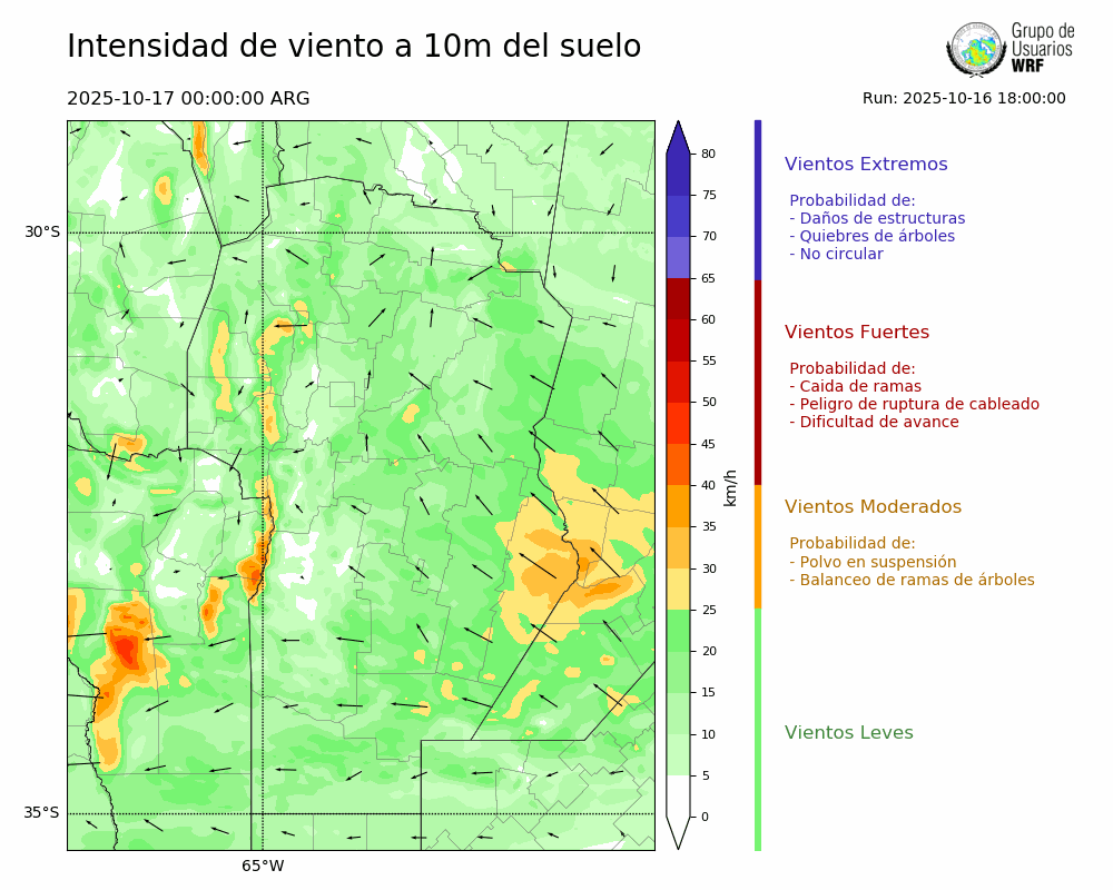 • Intensidad máxima: 19.91 km/h (17/10/2025 04hs.)