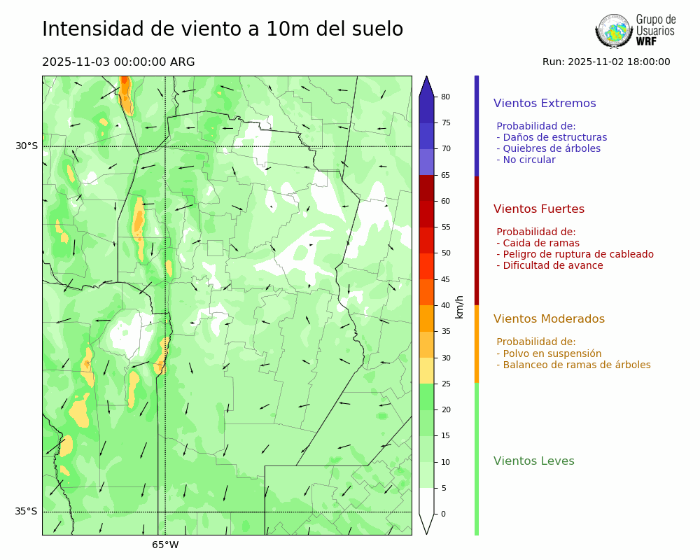 • Intensidad máxima: 16.64 km/h (03/11/2025 10hs.)