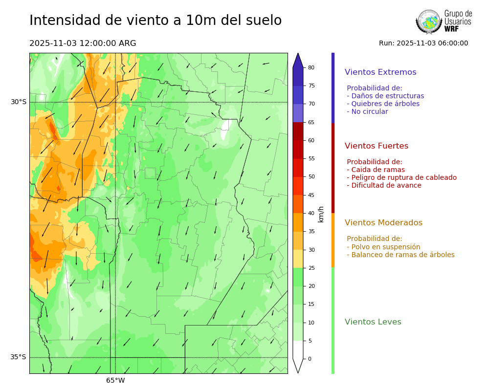 • Intensidad máxima: 23.25 km/h (03/11/2025 19hs.)