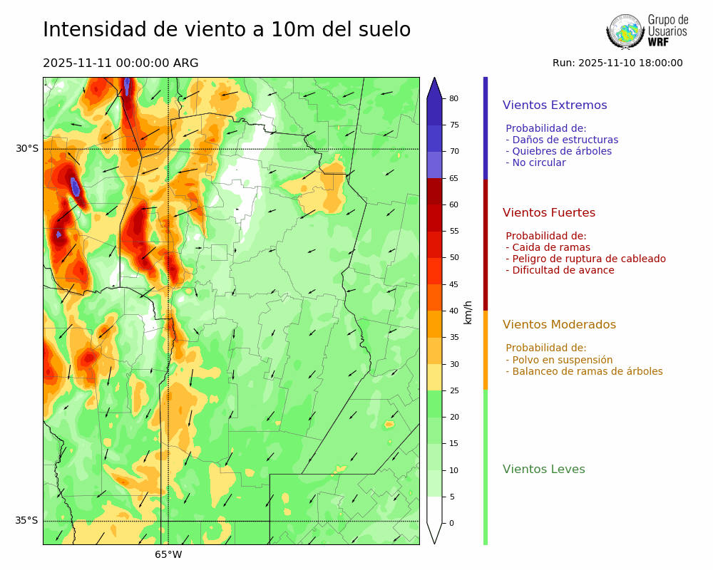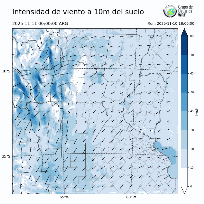 • Intensidad máxima: 18.88 km/h (11/11/2025 09hs.)