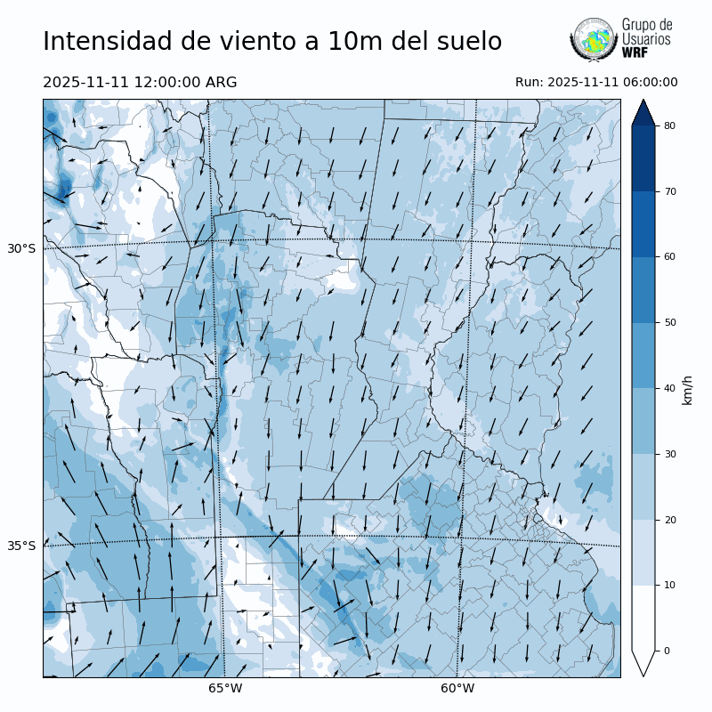 • Intensidad máxima: 5.98 km/h (11/11/2025 18hs.)