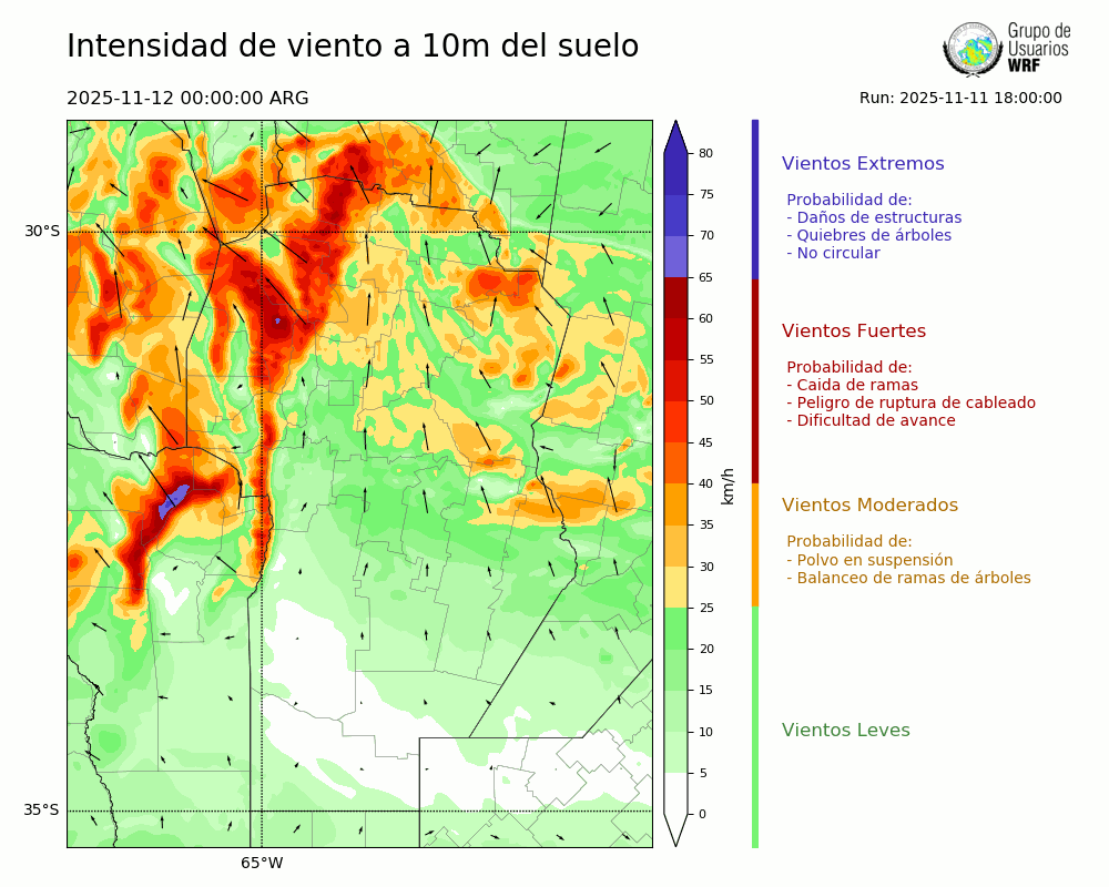 • Intensidad máxima: 19.34 km/h (12/11/2025 00hs.)