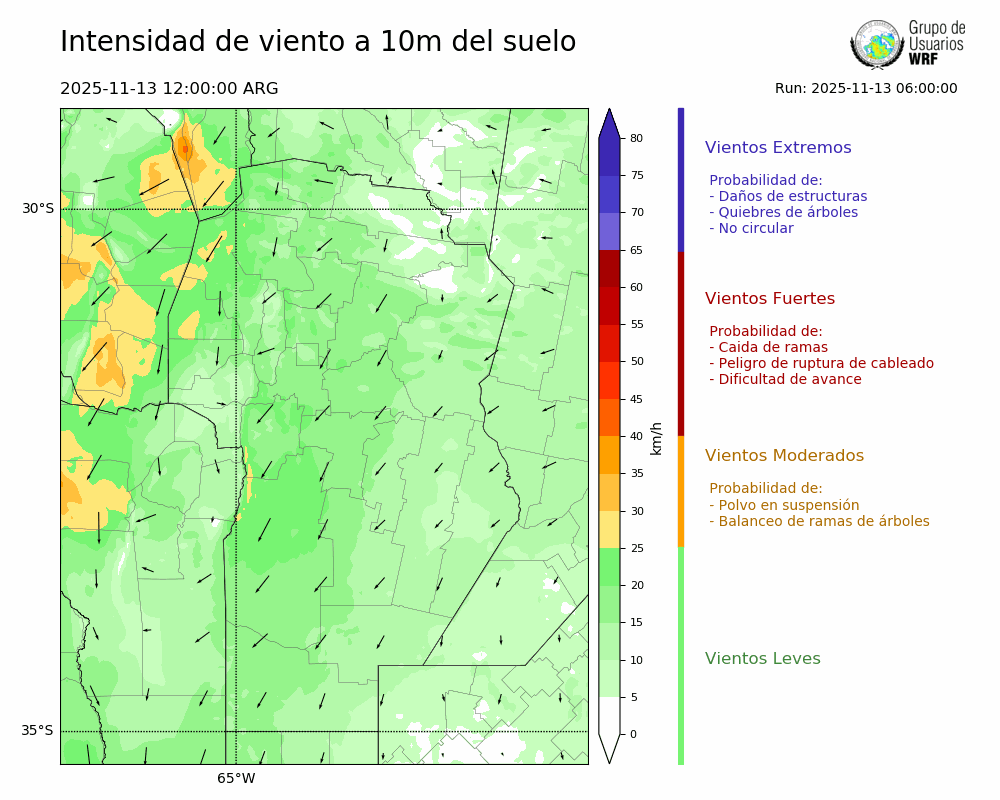 • Intensidad máxima: 19.42 km/h (13/11/2025 17hs.)