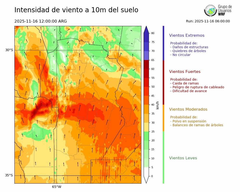 • Intensidad máxima: 34.06 km/h (16/11/2025 15hs.)