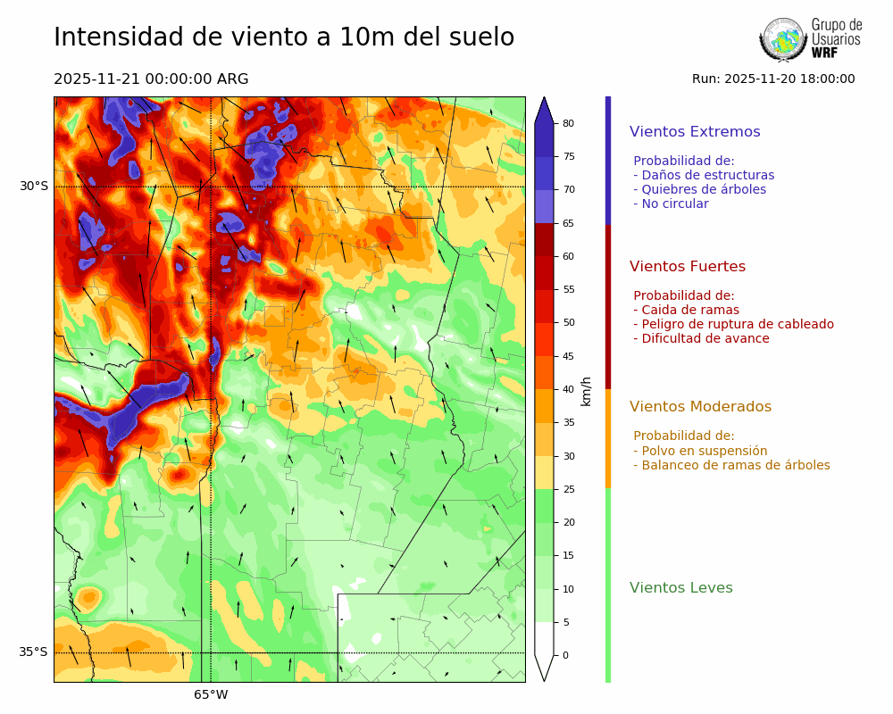 • Intensidad máxima: 35.03 km/h (21/11/2025 00hs.)