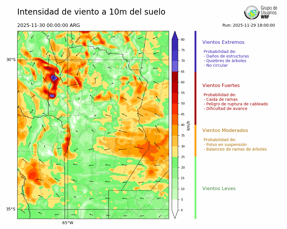• Intensidad máxima: 11.77 km/h (30/11/2025 10hs.)