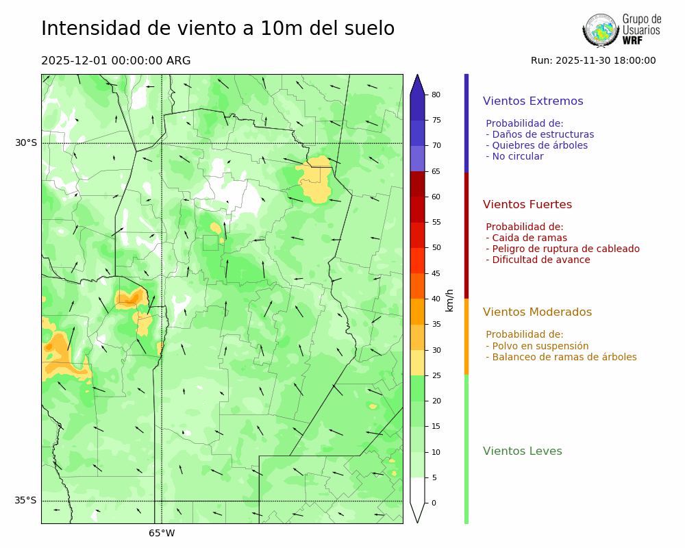 • Intensidad máxima: 17.16 km/h (01/12/2025 00hs.)