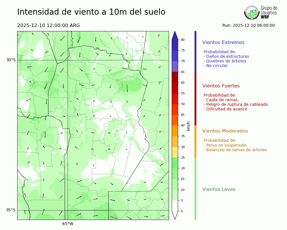• Intensidad máxima: 20.23 km/h (10/12/2025 20hs.)