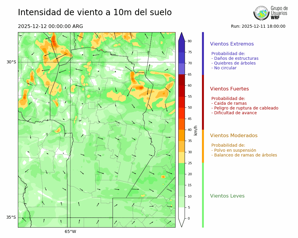 • Intensidad máxima: 10.72 km/h (12/12/2025 07hs.)