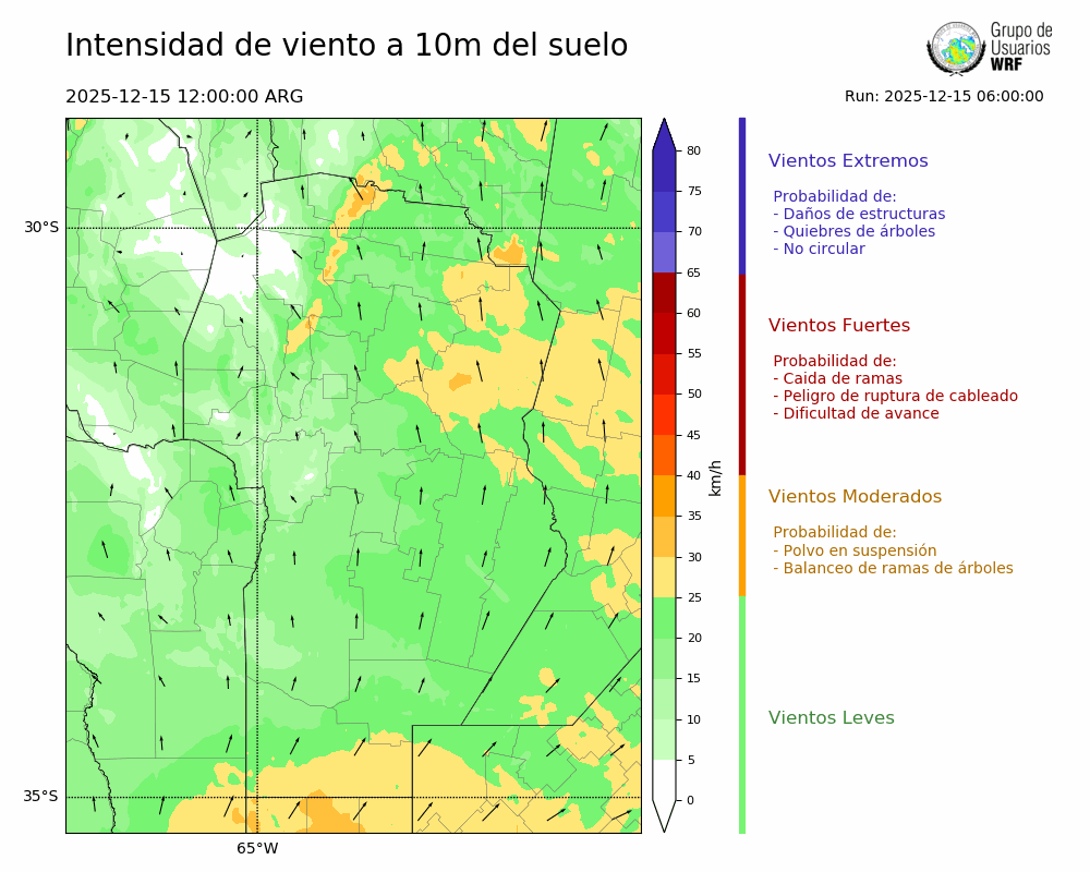 • Intensidad máxima: 12.48 km/h (15/12/2025 21hs.)