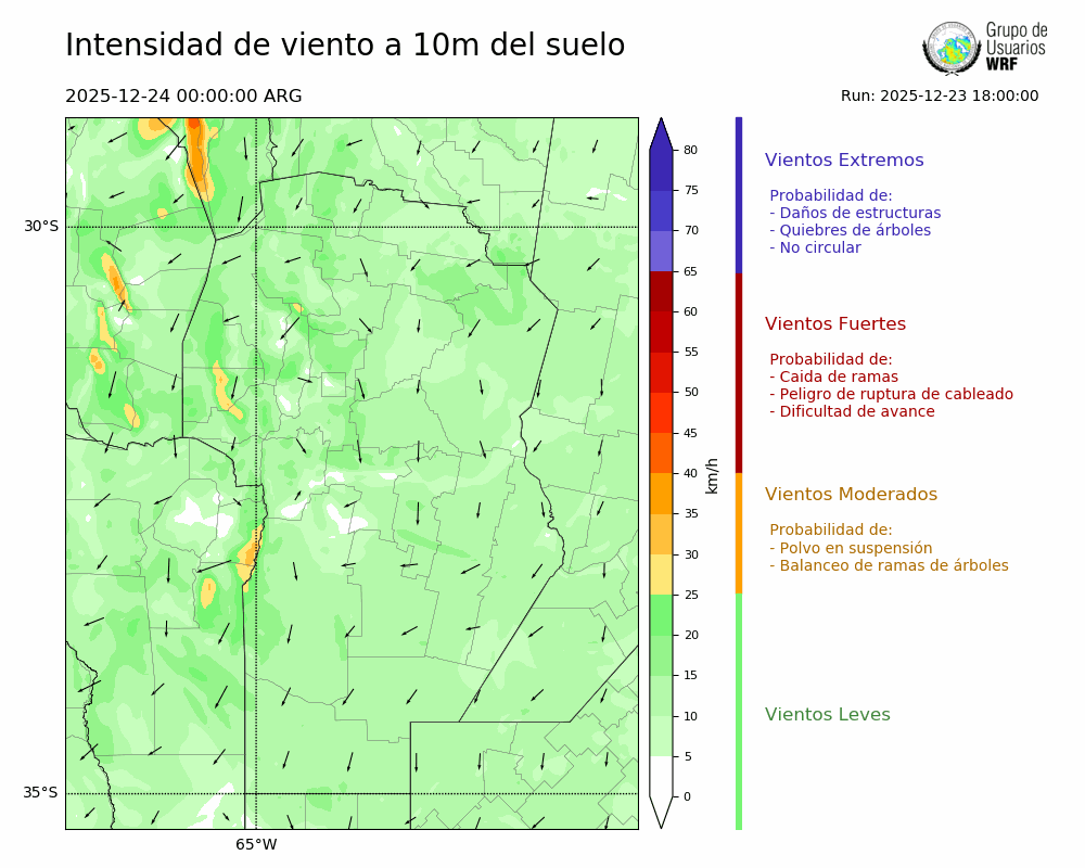 • Intensidad máxima: 12.86 km/h (24/12/2025 11hs.)