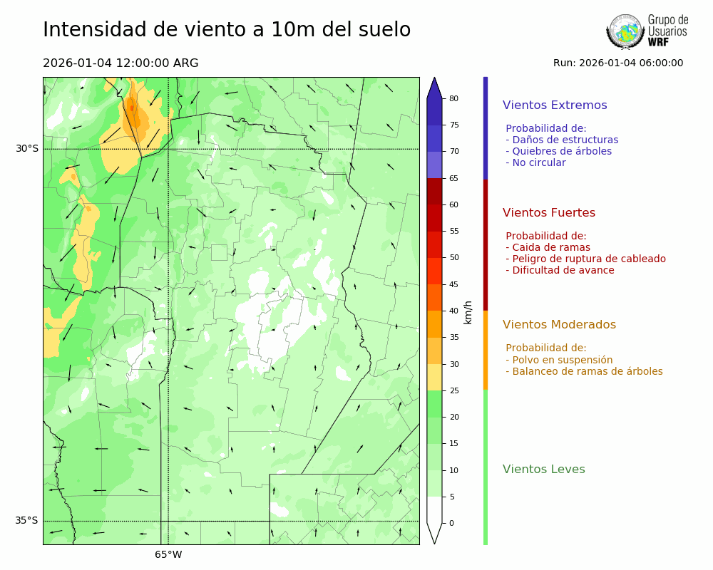 • Intensidad máxima: 25.16 km/h (04/01/2026 20hs.)