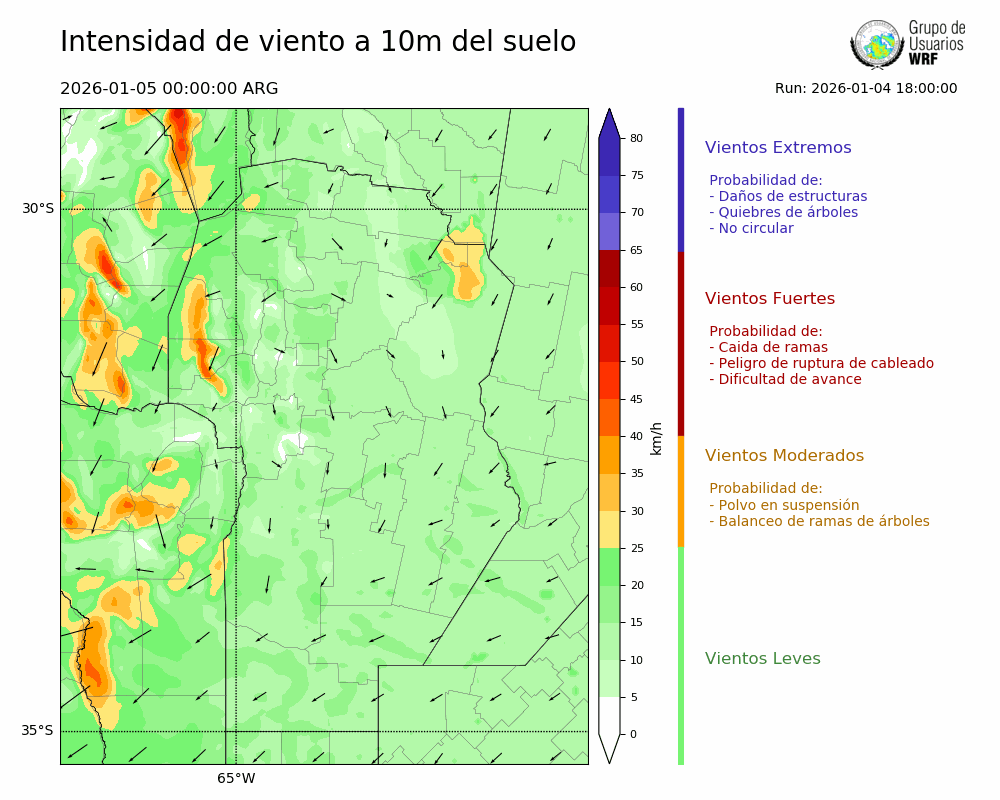 • Intensidad máxima: 19.96 km/h (05/01/2026 11hs.)