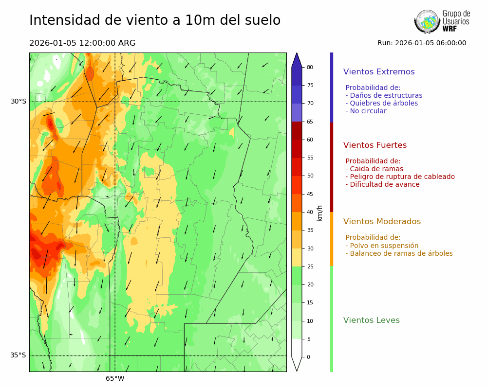 • Intensidad máxima: 22.12 km/h (06/01/2026 12hs.)
