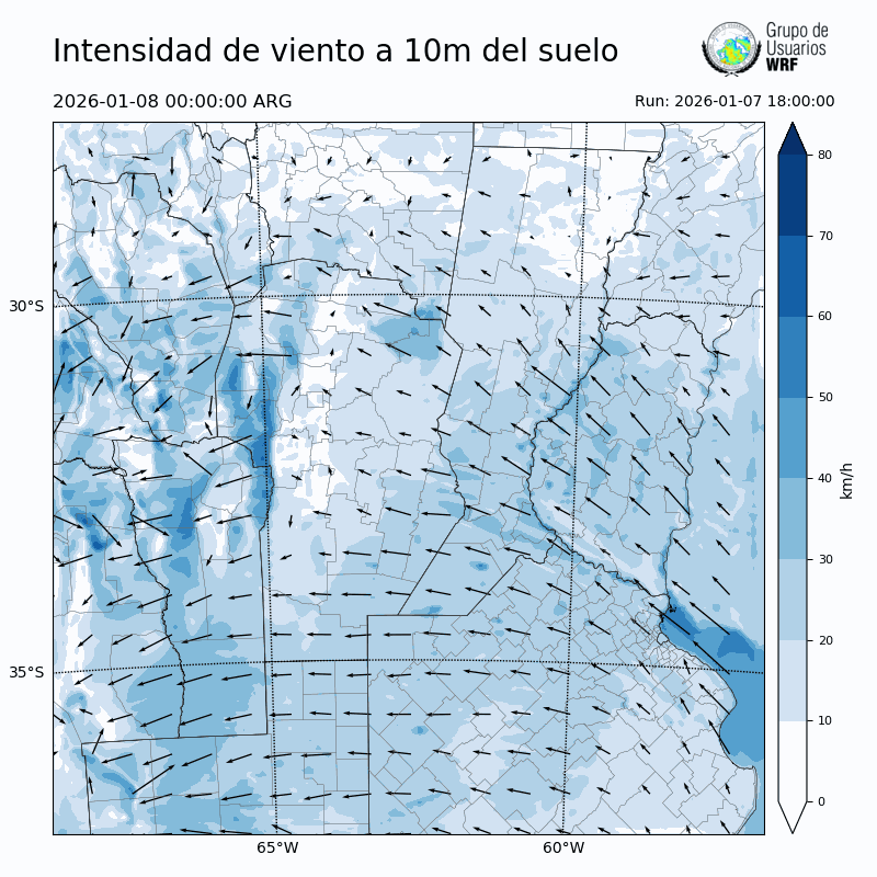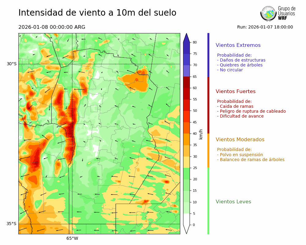 • Intensidad máxima: 17.37 km/h (08/01/2026 05hs.)
