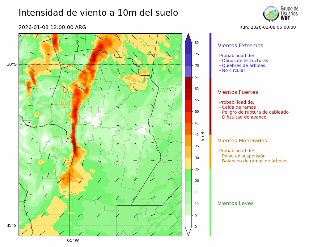 • Intensidad máxima: 11.81 km/h (08/01/2026 13hs.)