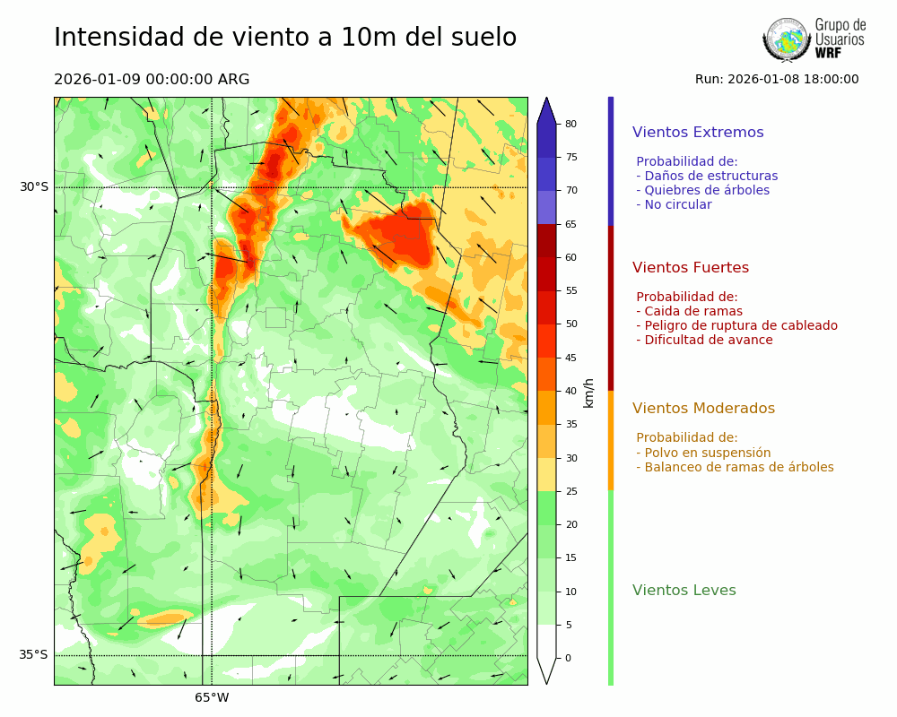 • Intensidad máxima: 11.98 km/h (09/01/2026 00hs.)