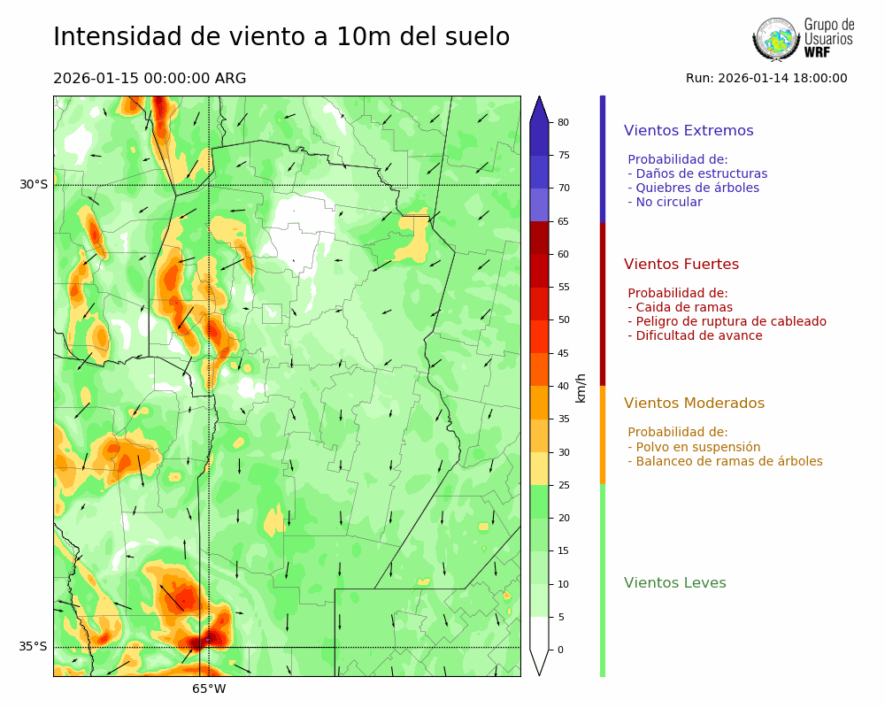 • Intensidad máxima: 3.07 km/h (15/01/2026 04hs.)