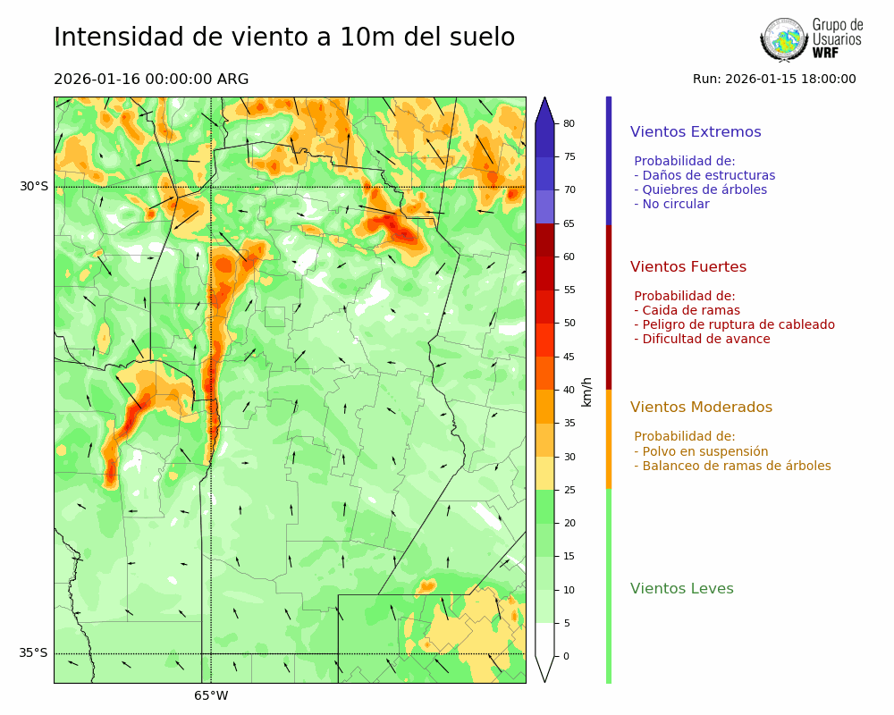 • Intensidad máxima: 18.15 km/h (16/01/2026 01hs.)