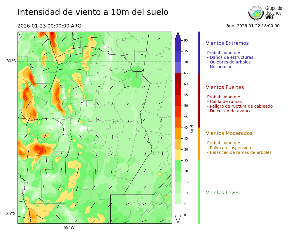 • Intensidad máxima: 9.88 km/h (25/01/2026 08hs.)
