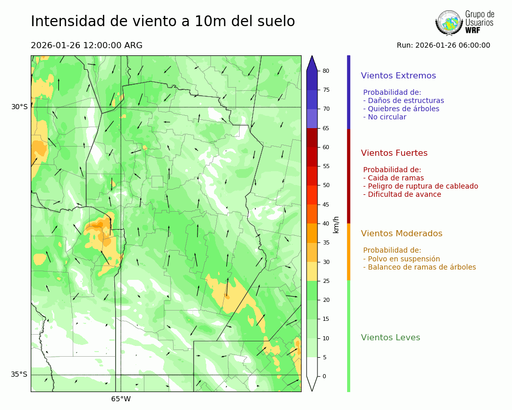 • Intensidad máxima: 4.26 km/h (26/01/2026 15hs.)