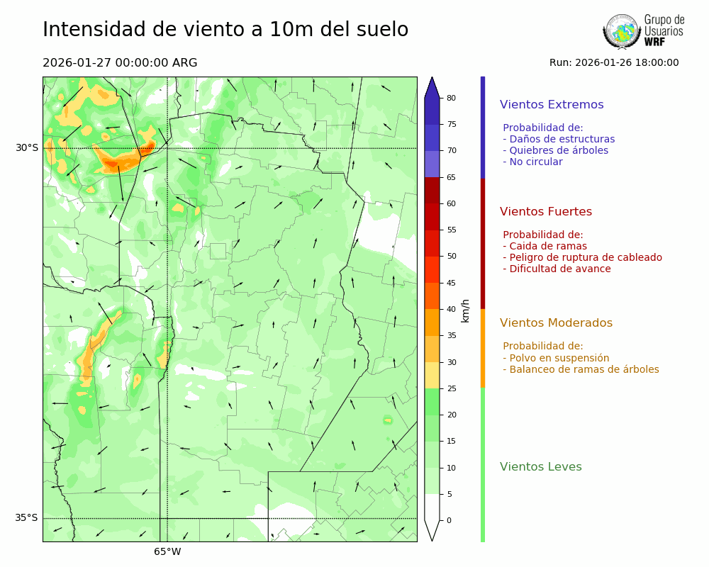 • Intensidad máxima: 15.40 km/h (27/01/2026 11hs.)