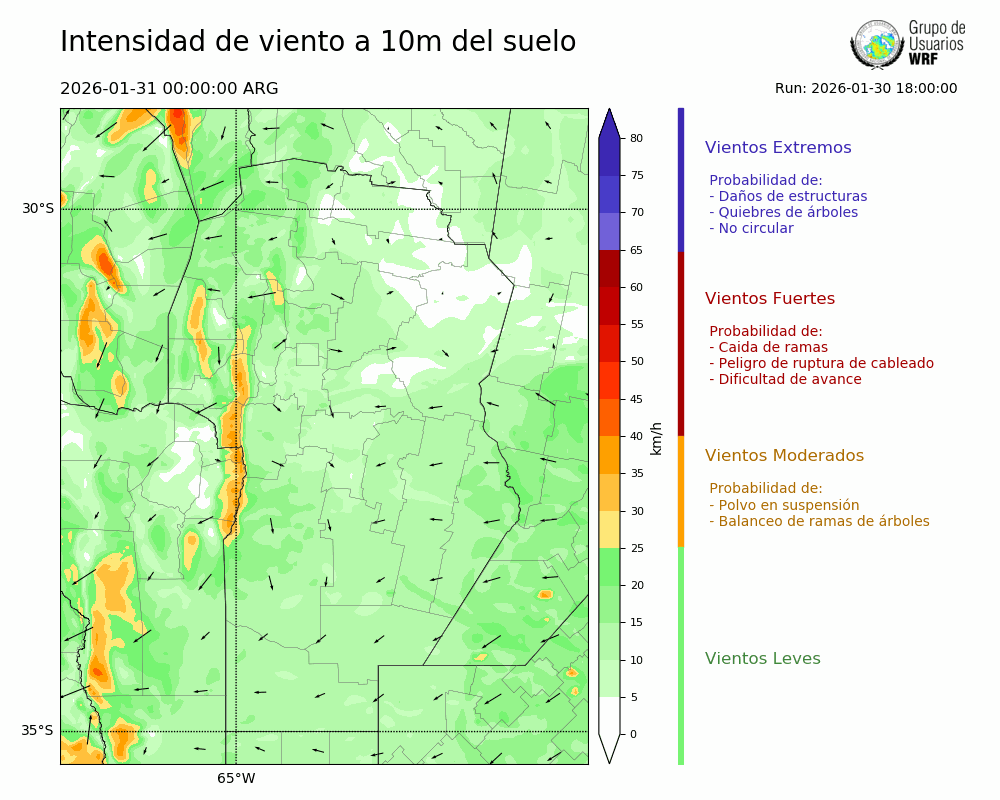 • Intensidad máxima: 8.42 km/h (31/01/2026 06hs.)