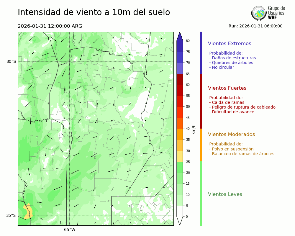 • Intensidad máxima: 17.10 km/h (31/01/2026 21hs.)