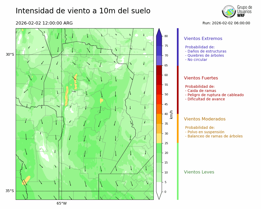 • Intensidad máxima: 14.33 km/h (04/02/2026 11hs.)