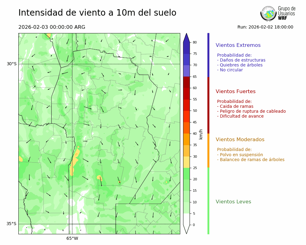 • Intensidad máxima: 14.80 km/h (03/02/2026 06hs.)