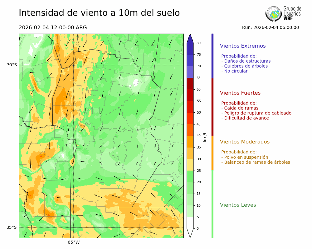 • Intensidad máxima: 20.38 km/h (04/02/2026 13hs.)