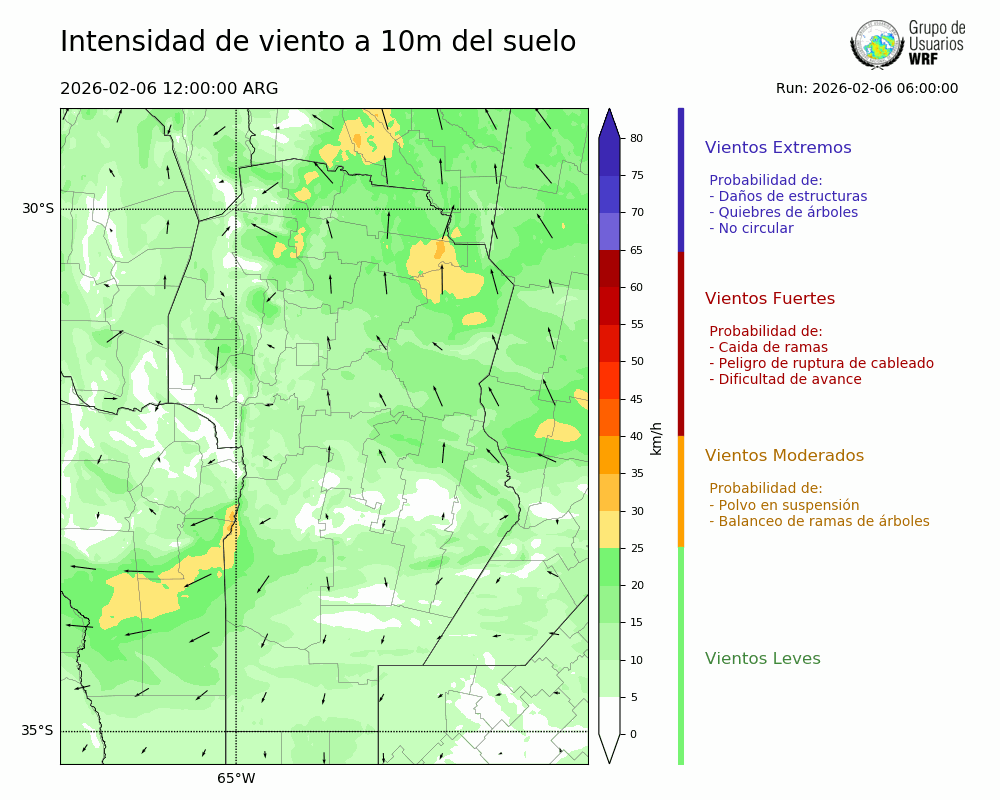 • Intensidad máxima: 11.95 km/h (06/02/2026 15hs.)