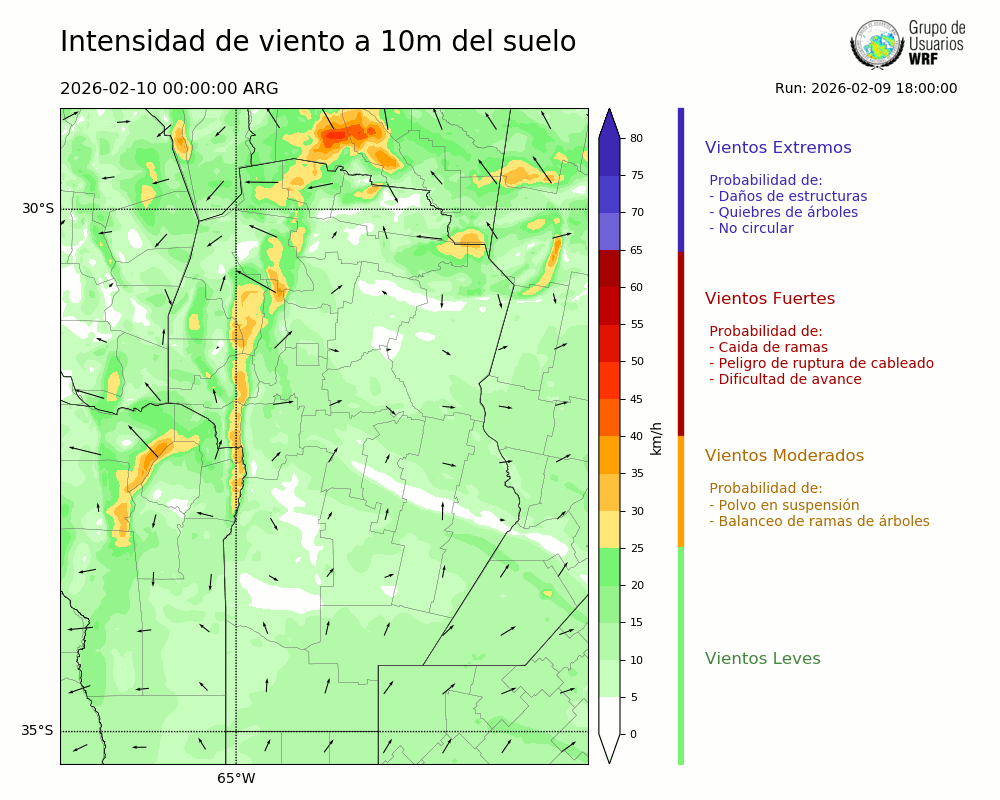 • Intensidad máxima: 11.57 km/h (10/02/2026 00hs.)