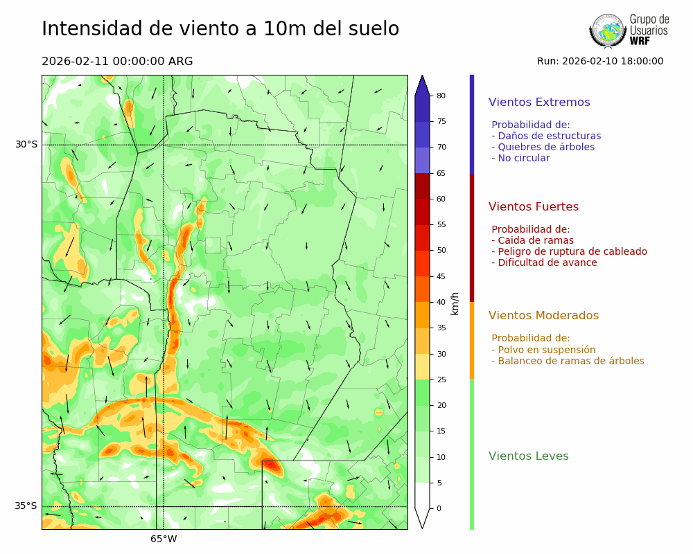 • Intensidad máxima: 11.24 km/h (11/02/2026 15hs.)
