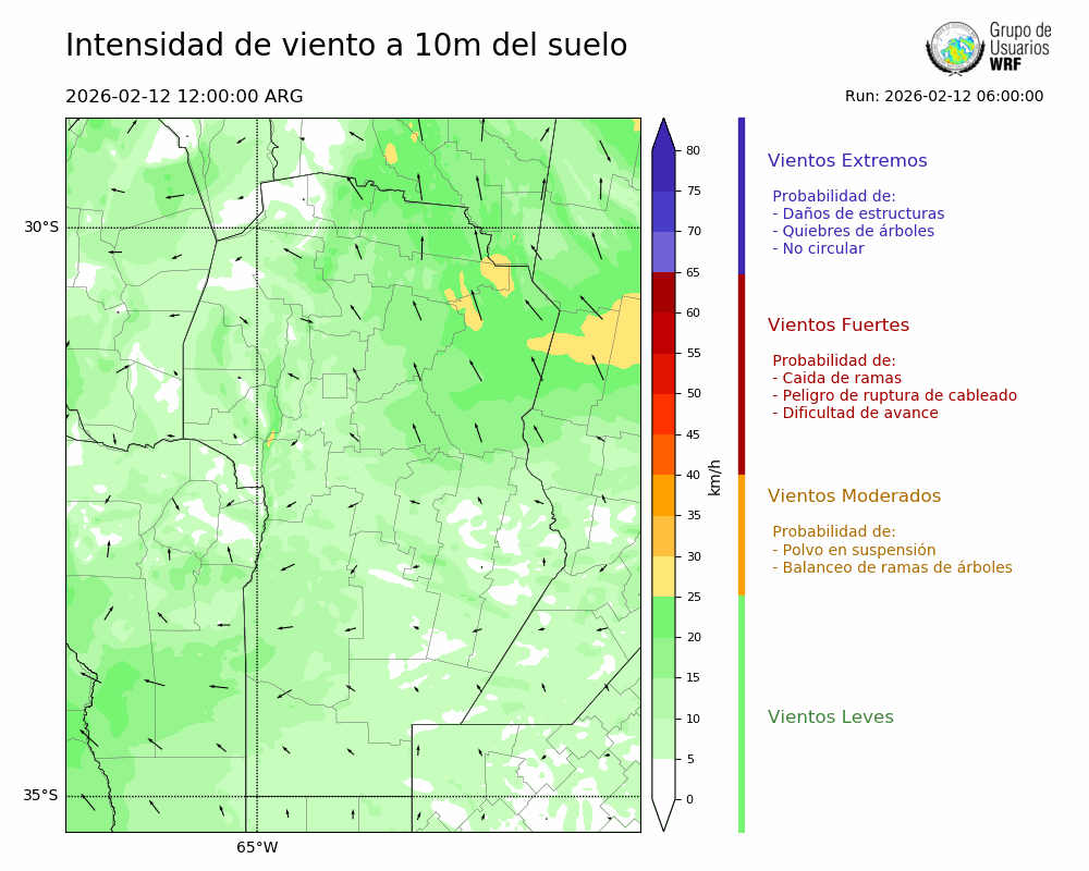• Intensidad máxima: 6.30 km/h (14/02/2026 05hs.)