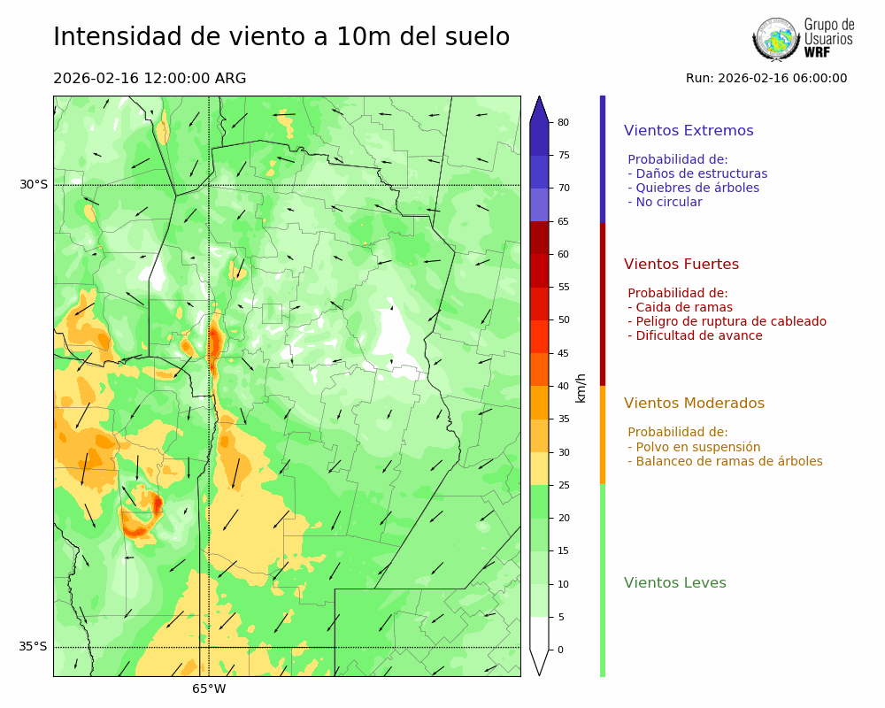 • Intensidad máxima: 18.58 km/h (16/02/2026 12hs.)