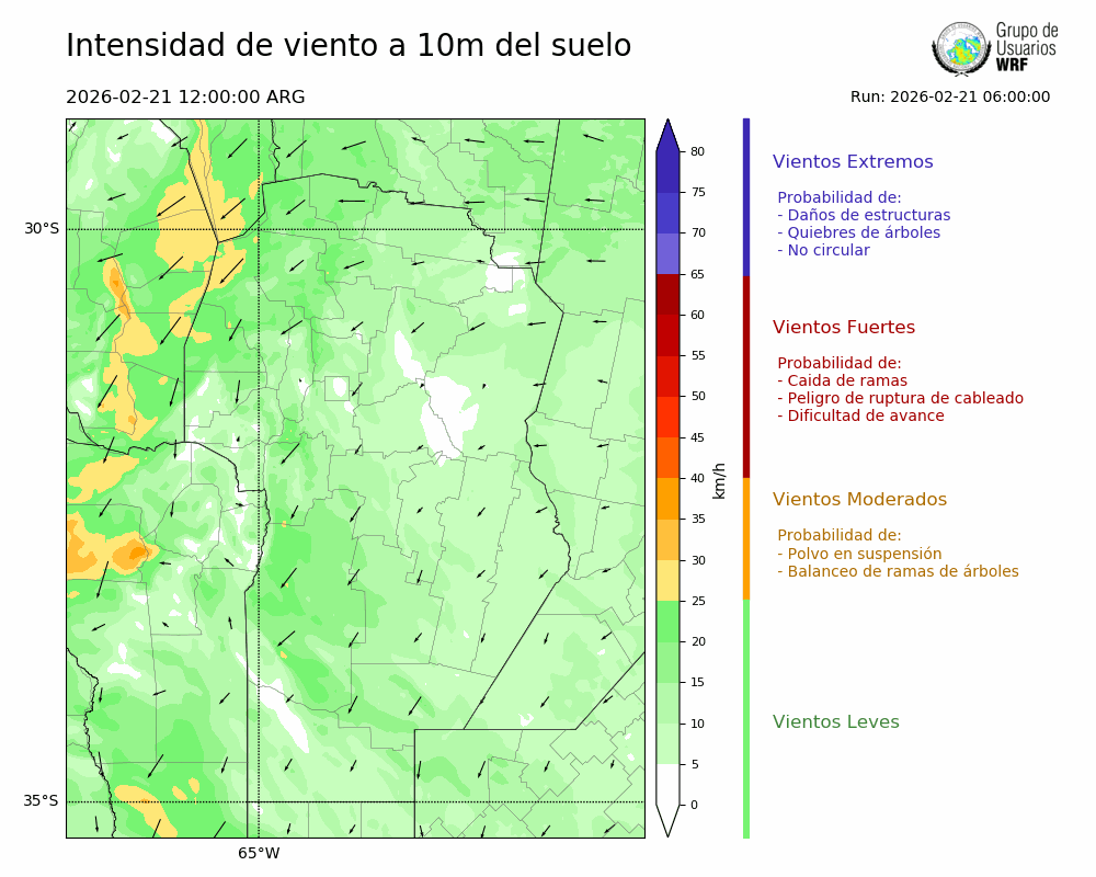 • Intensidad máxima: 15.68 km/h (21/02/2026 20hs.)
