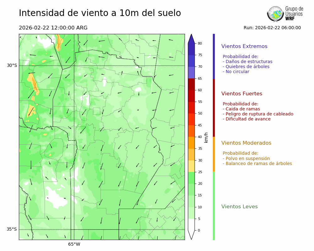 • Intensidad máxima: 14.80 km/h (22/02/2026 16hs.)
