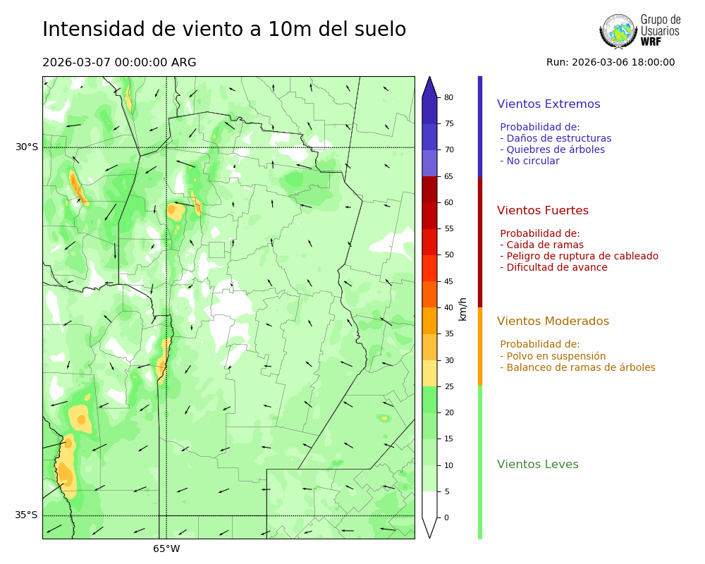 • Intensidad máxima: 7.03 km/h (07/03/2026 02hs.)
