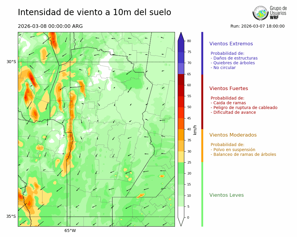 • Intensidad máxima: 3.51 km/h (08/03/2026 07hs.)