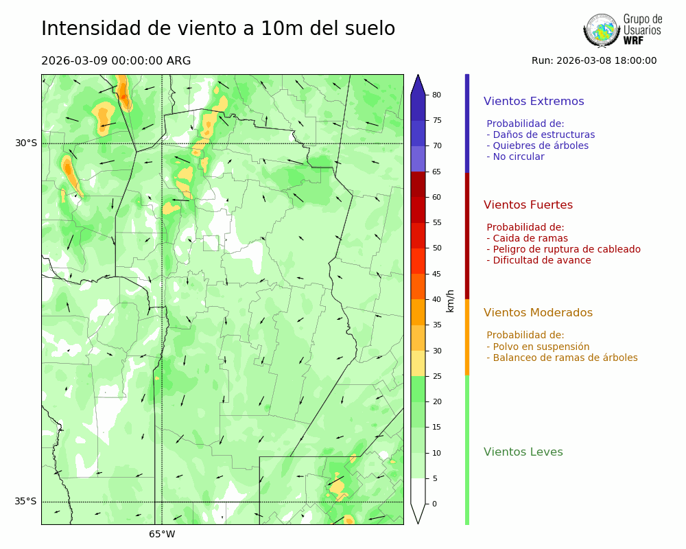 • Intensidad máxima: 7.92 km/h (09/03/2026 06hs.)