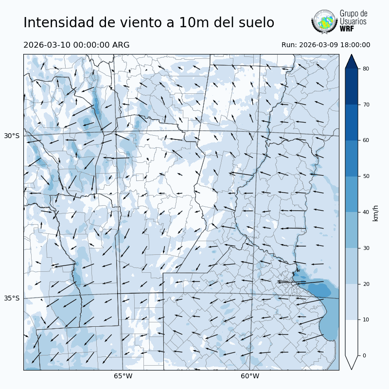 • Intensidad máxima: 9.49 km/h (10/03/2026 00hs.)