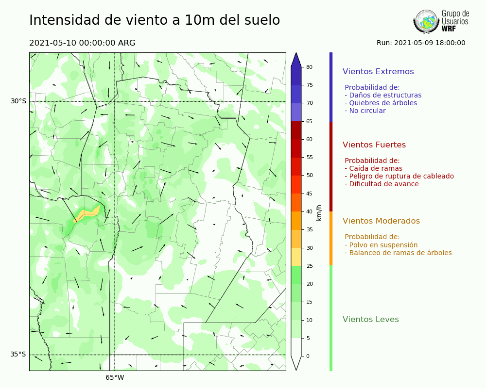 • Intensidad máxima: 18.56 km/h (10/05/2021 11hs.)