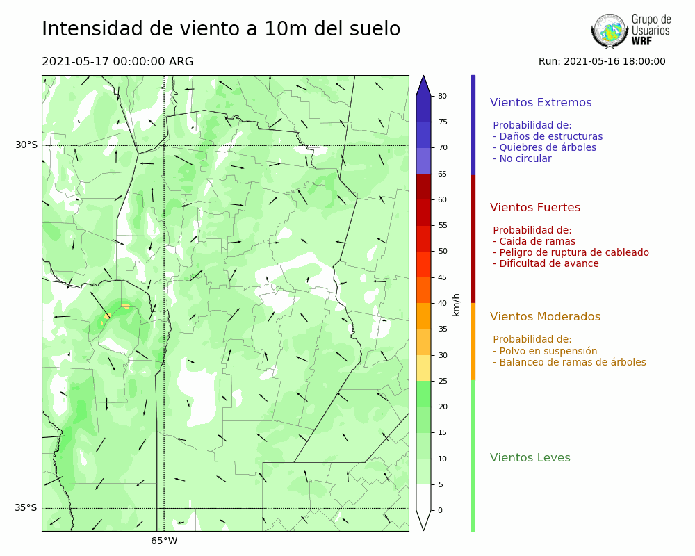 • Intensidad máxima: 13.60 km/h (17/05/2021 09hs.)