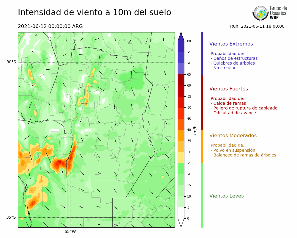 • Intensidad máxima: 45.78 km/h (12/06/2021 06hs.)