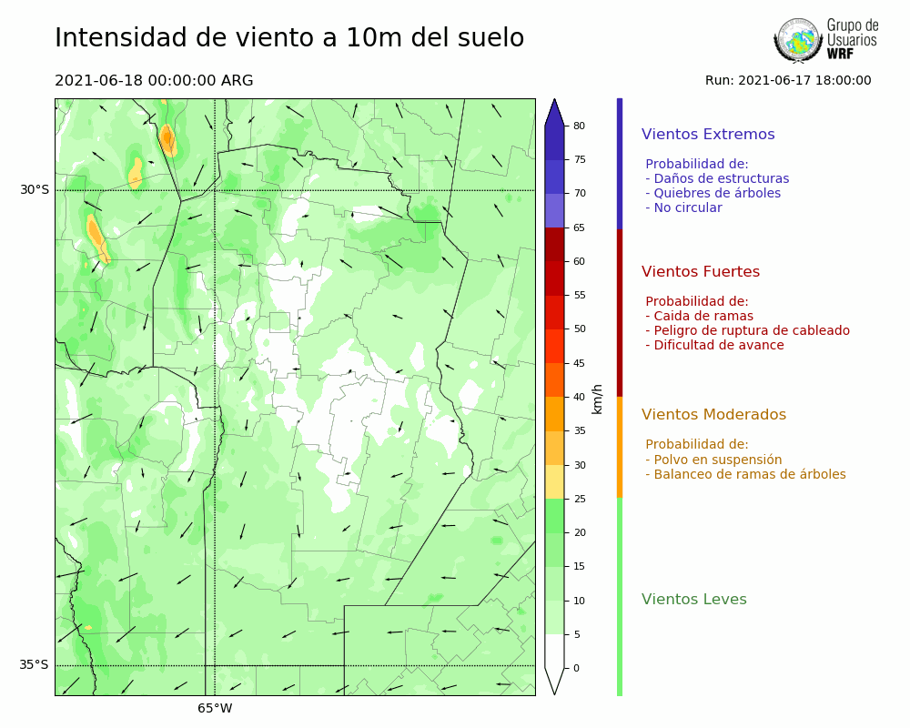 • Intensidad máxima: 16.41 km/h (18/06/2021 11hs.)