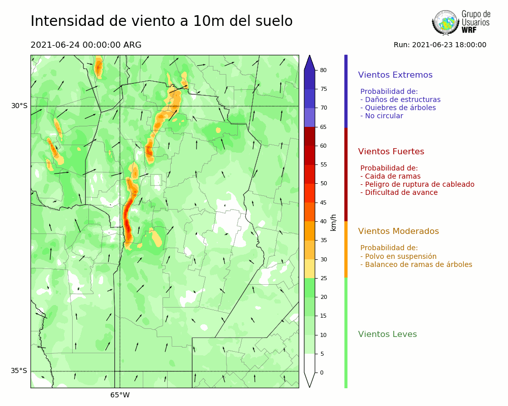 • Intensidad máxima: 14.35 km/h (24/06/2021 11hs.)
