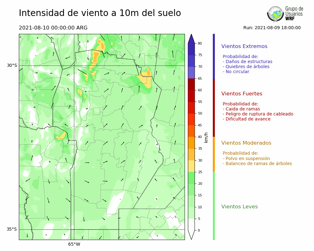 • Intensidad máxima: 15.15 km/h (12/08/2021 03hs.)