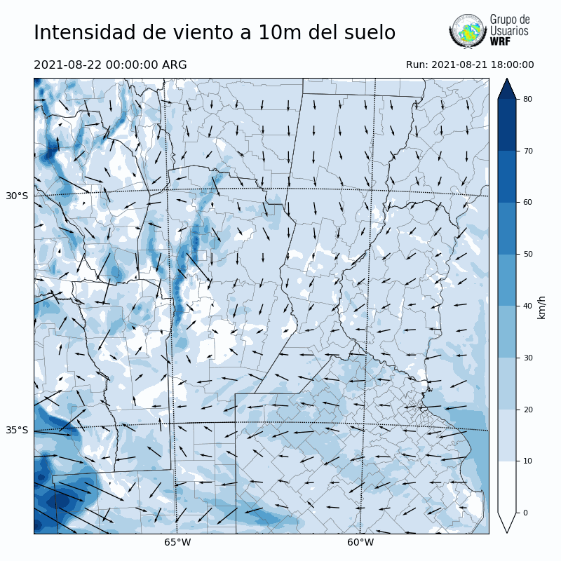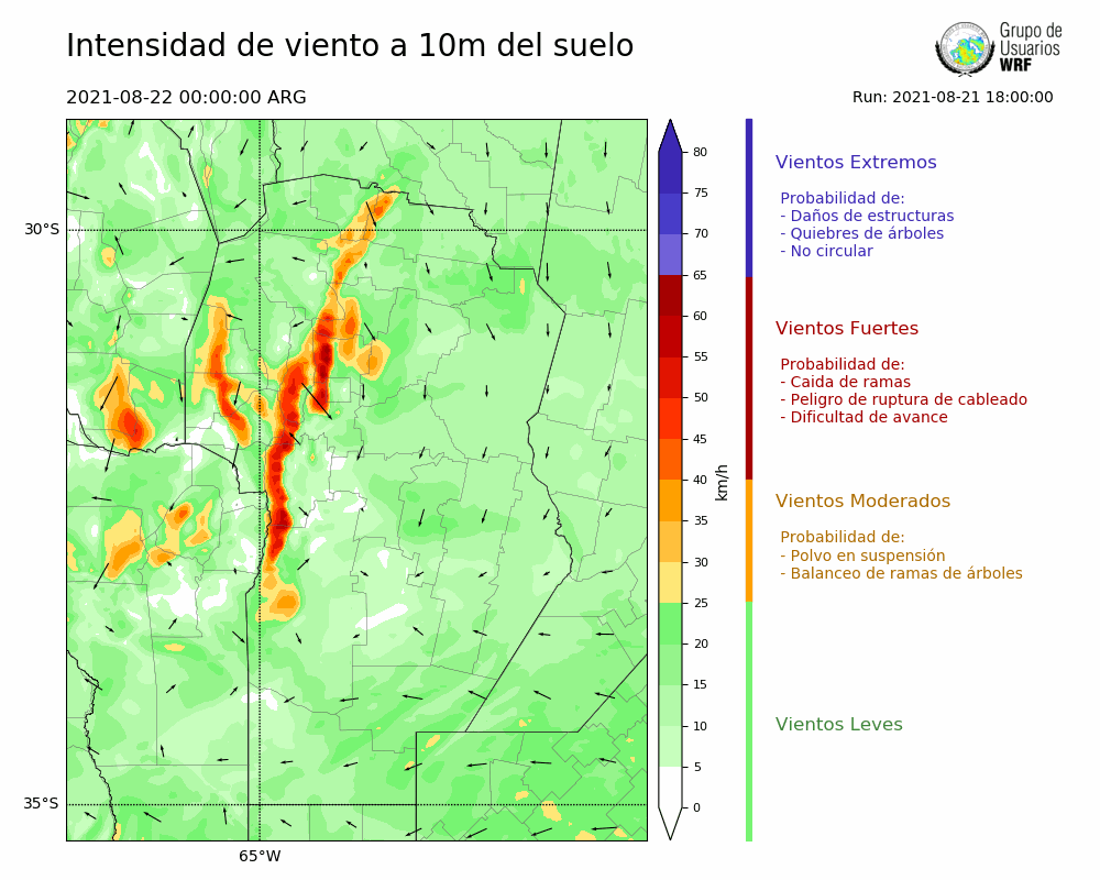 • Intensidad máxima: 58.46 km/h (22/08/2021 01hs.)
