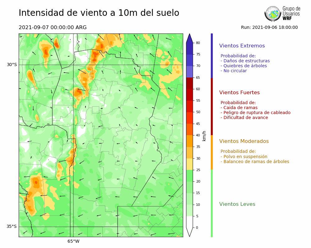 • Intensidad máxima: 9.86 km/h (07/09/2021 06hs.)